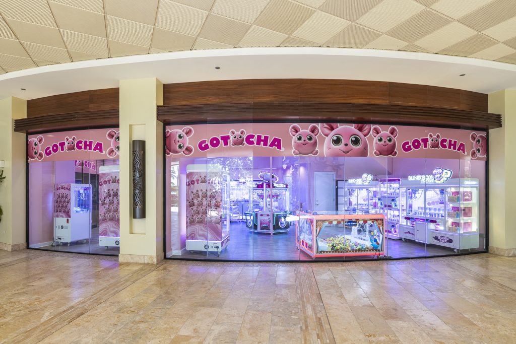 地元のゲームセンター、ファンファクトリーの新コンセプトである「ガッチャ」は、さまざまなタイプのUFOキャッチャーがずらりと並ぶ楽しいショップ。キュートなピンクがひときわ目を引く店内はとても明るく、カラフルなゲームマシンがキラキラ輝く。